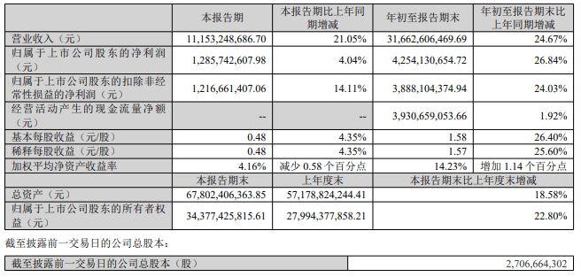 10月23日,J9平台APP下载汇川技术(300124)披露三季报,2025年前三季度公司实现营业收入316.63亿元,同比增长24.67%;归母净利润42.54亿元,同比增长26.84%。其中,第三季度实现营业收入111.53亿元,同比增长21.05%;归母净利润12.86亿元,J9平台APP下载同比增长4.04%。
