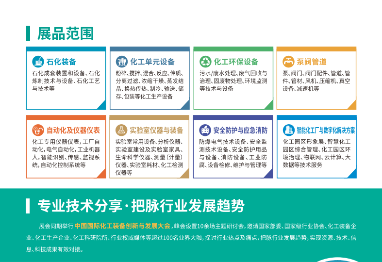 展会以 “全产业链协同创新,推动化工装备高质量发展”为主题,聚焦石油化工、精细化工、新能源、环保等核心领域,展示泵、阀门、管道、换热器、反应釜、分离过<a href="http://www.hnyongfutang.com/" target="_blank" 97国际平台登录入口target=_blank>97国际平台登录入口滤、蒸发结晶、微反应器、智能化工厂及数字化解决方案等先进装备与技术。同期还将举办第十八届上海国际化工环保展会(CEEF 2026)、第十八届上海国际蒸发及结晶技术设备展览会(CECF 2026),形成 化工装备全产业链一站式采购平台。