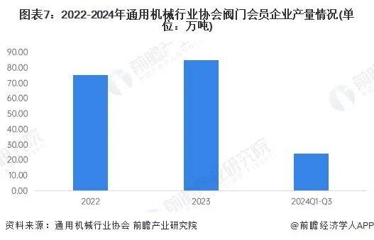 从通用机械行业协会会员企业产量数据看,2023年行业协会41家阀门制造企业完成阀门84.96万吨,同比增长10.31%;2024年前三季度中29家阀门制造企业完成阀门24.49万吨,同比下降1.83%。