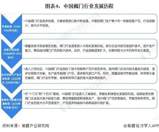 中国阀门行业经历了从技术引进到自主创新,再到高端化、智能化、绿色化发展的过程。早期,阀门行业依赖进口,技术水平较低;改革开放后,逐步引进技术并提升生产能力;进入21世纪后,技术创新加速,逐步实现高性能产品的国产化;近年来,随着国家政策支持,行业加快了智能制造和绿色生产的步伐,推动了技术升级和产业转型,阀门行业的国际竞争力和可持续发展能力显著提升。